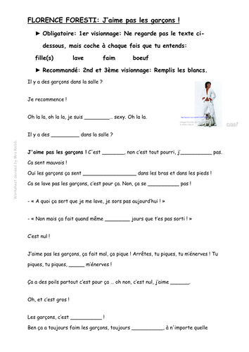 Florence Foresti J Aime Pas Les Garcons Teaching Resources