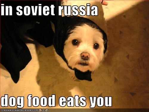 In soviet russia meme make u. Apr 11 2017 explore kimberly swanson s board soviet russia meme on pinterest. See all russian doge memes. In soviet russia dog pet you. Your meme was successfully uploaded and it is now in moderation. On october 24th 2014 tumblr user moonshineanimations posted a photograph of a dog wearing a russian hat positioned in front of a red communist flag. Laika a stray mongrel from the streets of moscow was selected to be the occupant of the soviet spacecraft sputnik 2 that was launched into outer space on 3 november 1957.